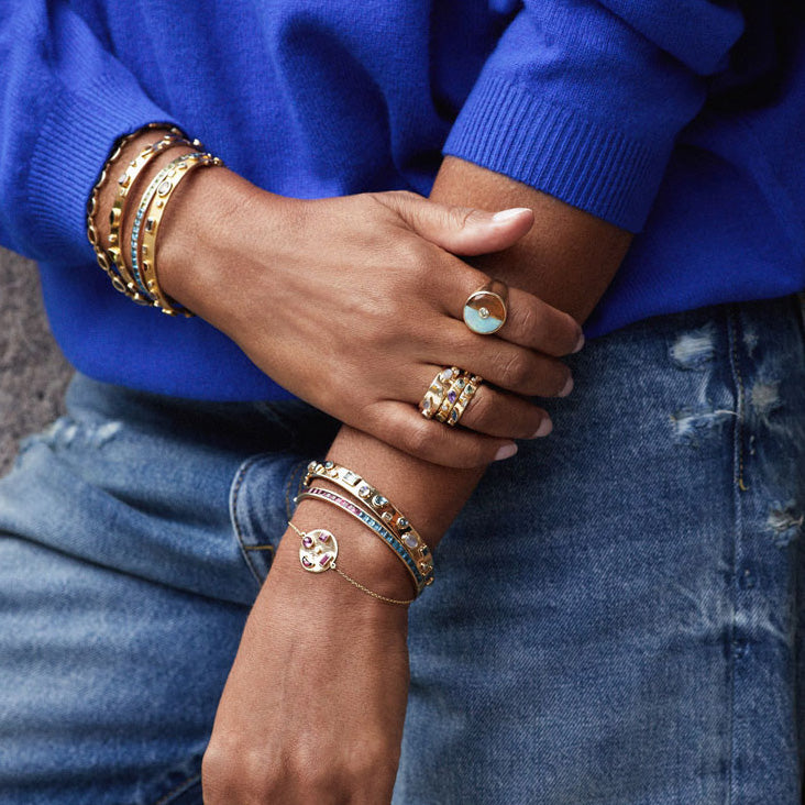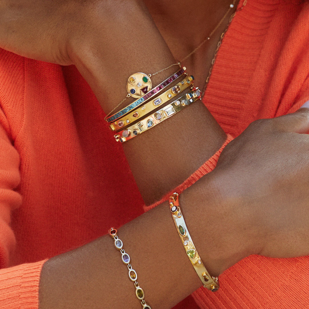 The Confetti collection is audacity embodied. This bracelet is an unabashed celebration. A festive shower of brilliant gems in varied shapes and hues. Stack them up and see where the path leads.