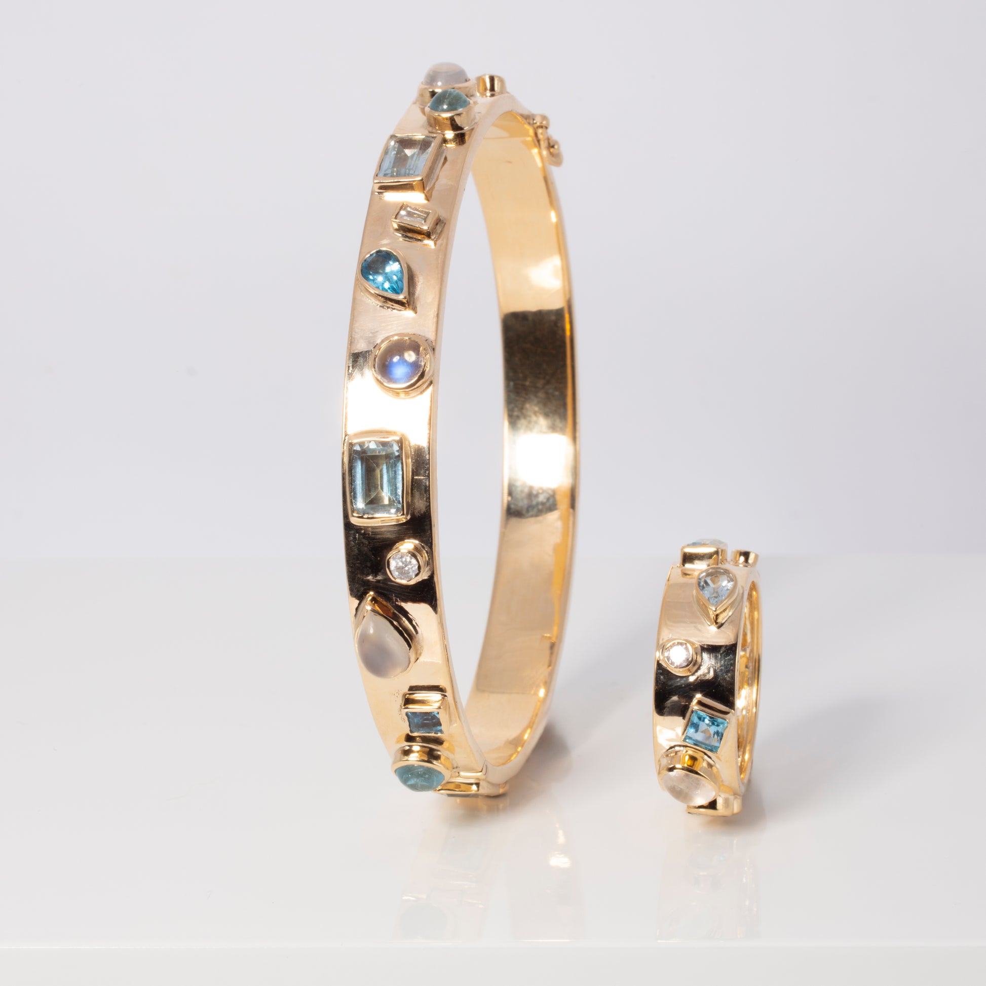 Moonstone, Diamond, Aquamarine, Blue Topaz