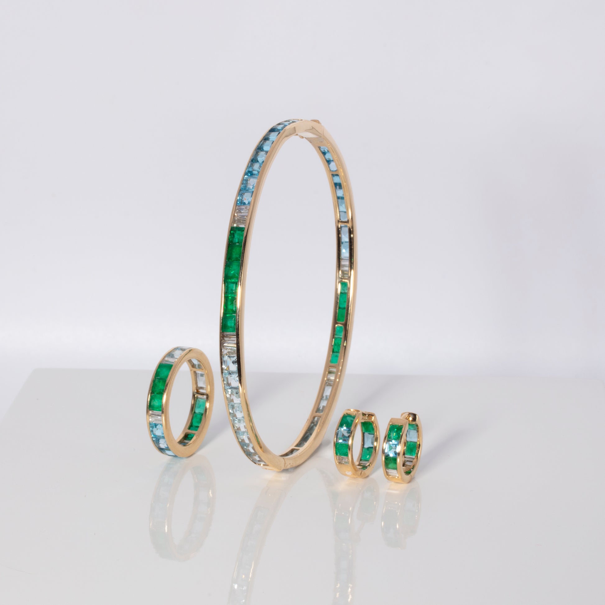 Emerald, Diamond, Aquamarine, Blue Topaz