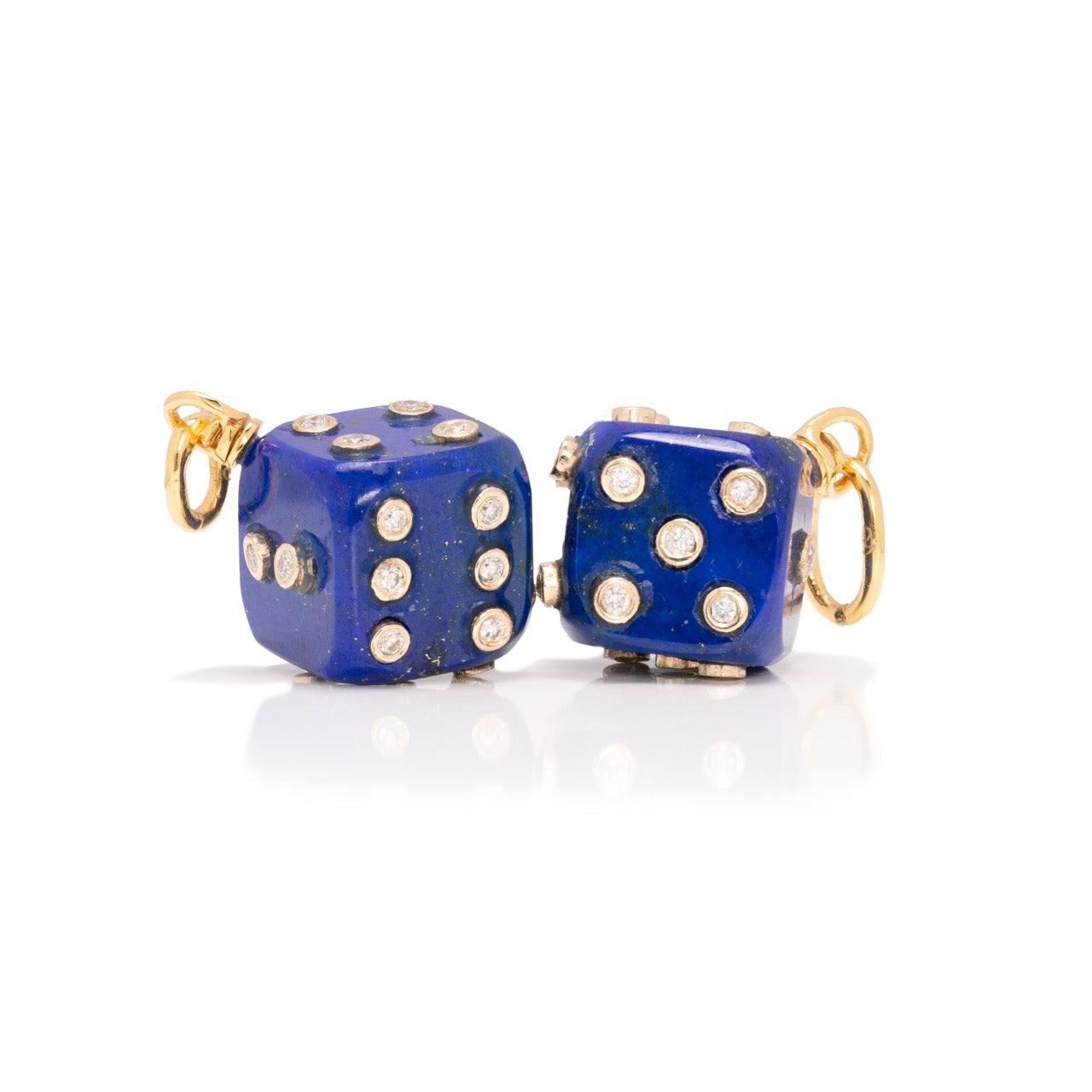 A gorgeous reminder to create your own luck, these handcrafted lapis dice with diamond pips bezel set in warm yellow 14k gold are the life of the party. Whether it’s a big life event or just a bit of daily encouragement, may as well roll the dice in style.